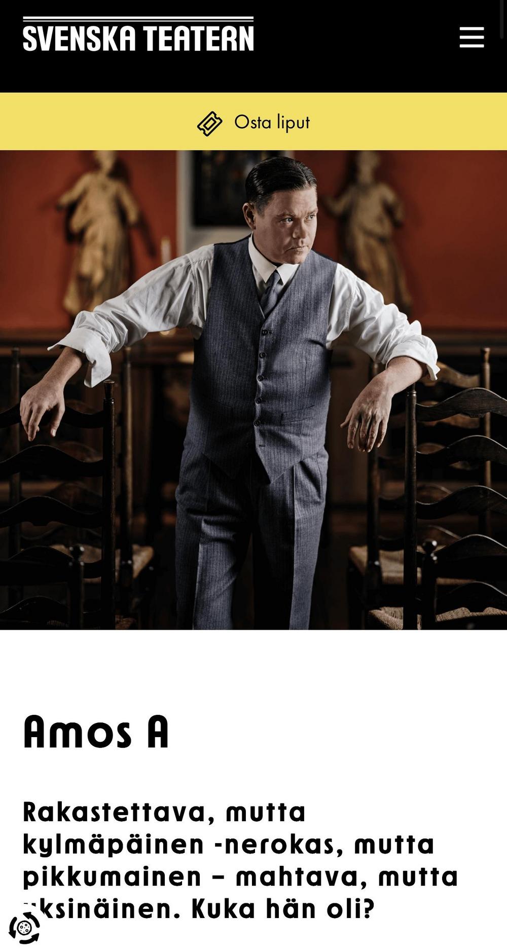 Esityksen ohjaa Kari Heiskanen, ja pääroolissa Amos Andersonina nähdään Patrick Henriksen.